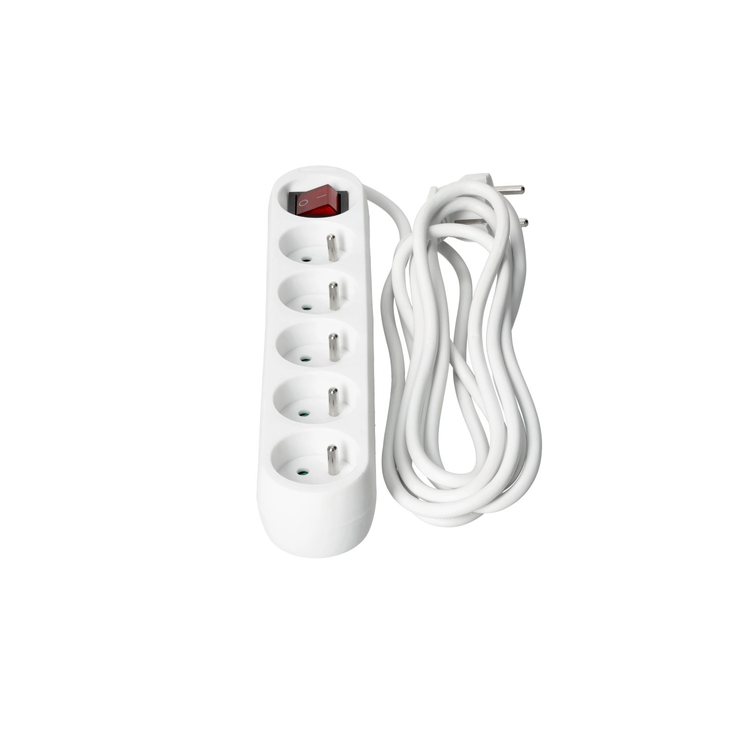 Verlängerungskabel Stecker 5x geerdete Steckdose Steckdosenleiste Ein/Aus Schalter 3m Weiß Linea Kobi