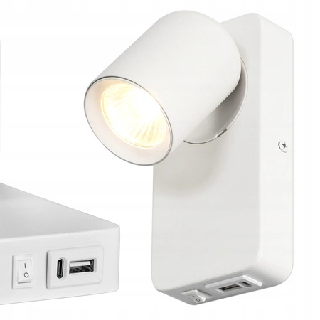 Die Wandleuchte ist mit einer GU10-Fassung ausgestattet, die einen einfachen Austausch von Leuchtmitteln mit einer maximalen Leistung von 35 W ermöglicht. Ein weiterer Vorteil ist das universelle Netzteil, und die eingebauten USB-C- und USB-A-Buchsen ermöglichen das bequeme Aufladen von elektronischen Geräten. Die Lampe eignet sich perfekt für Räume wie das Schlafzimmer, das Wohnzimmer, die Küche oder das Büro und sorgt für Gemütlichkeit und Eleganz.