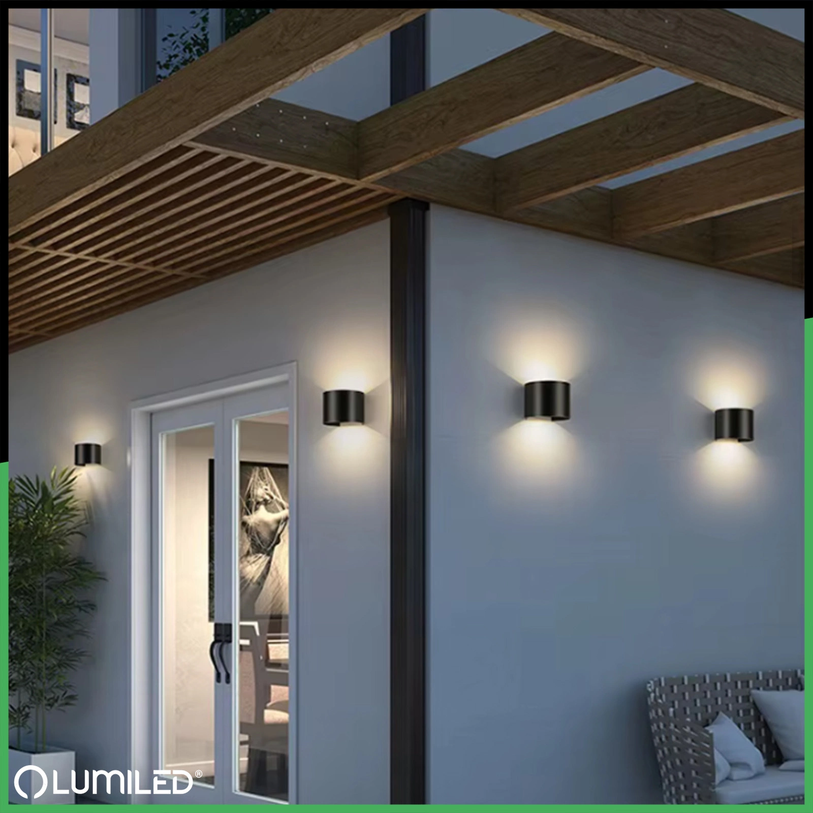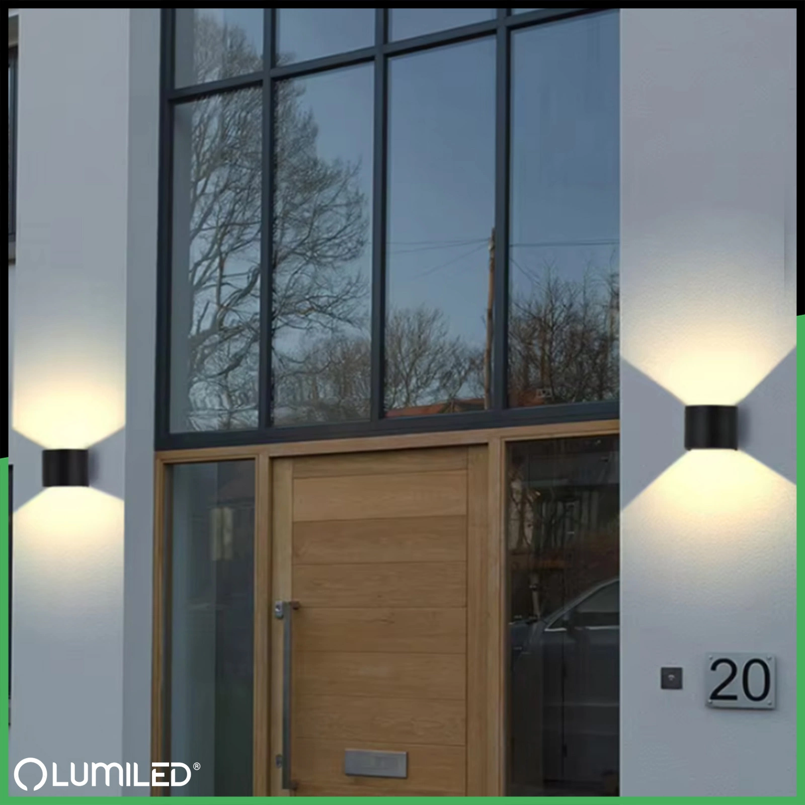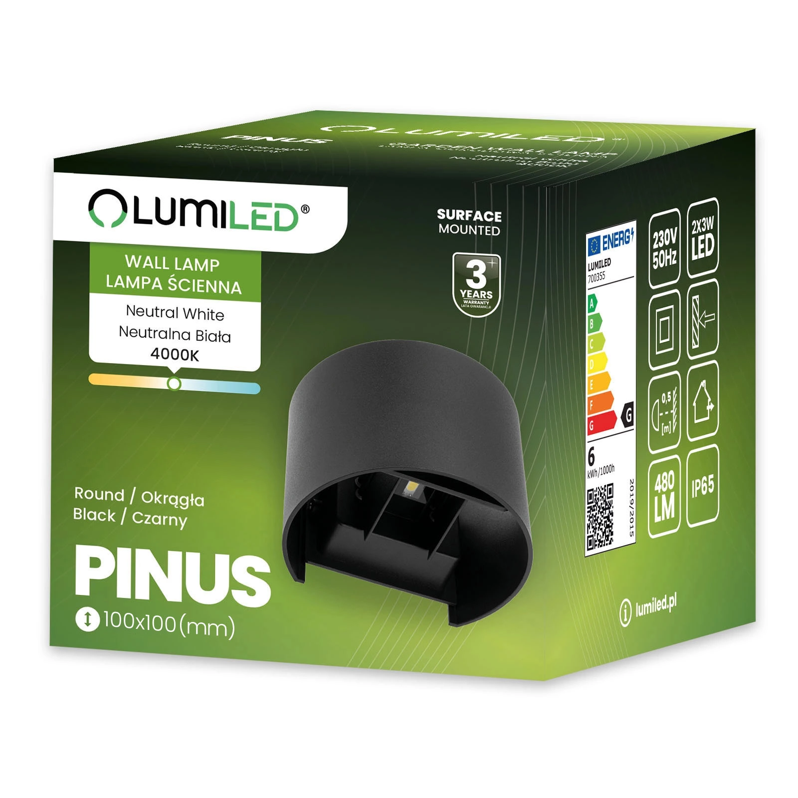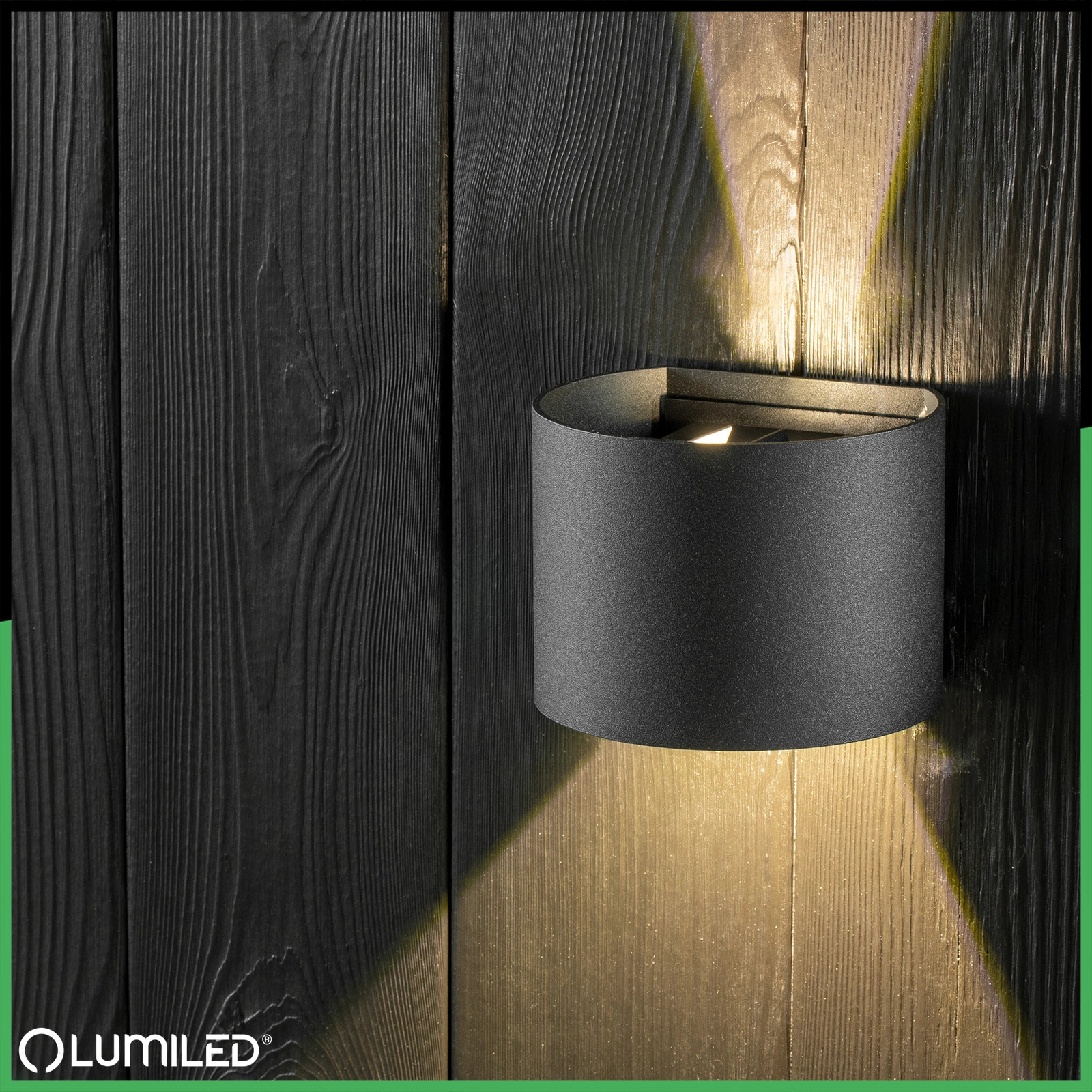 Wandleuchte Außen 2x 3W, Garten-Wandleuchte 4000K nach oben und unten verstellbar Schwarz PINUS LUMILED