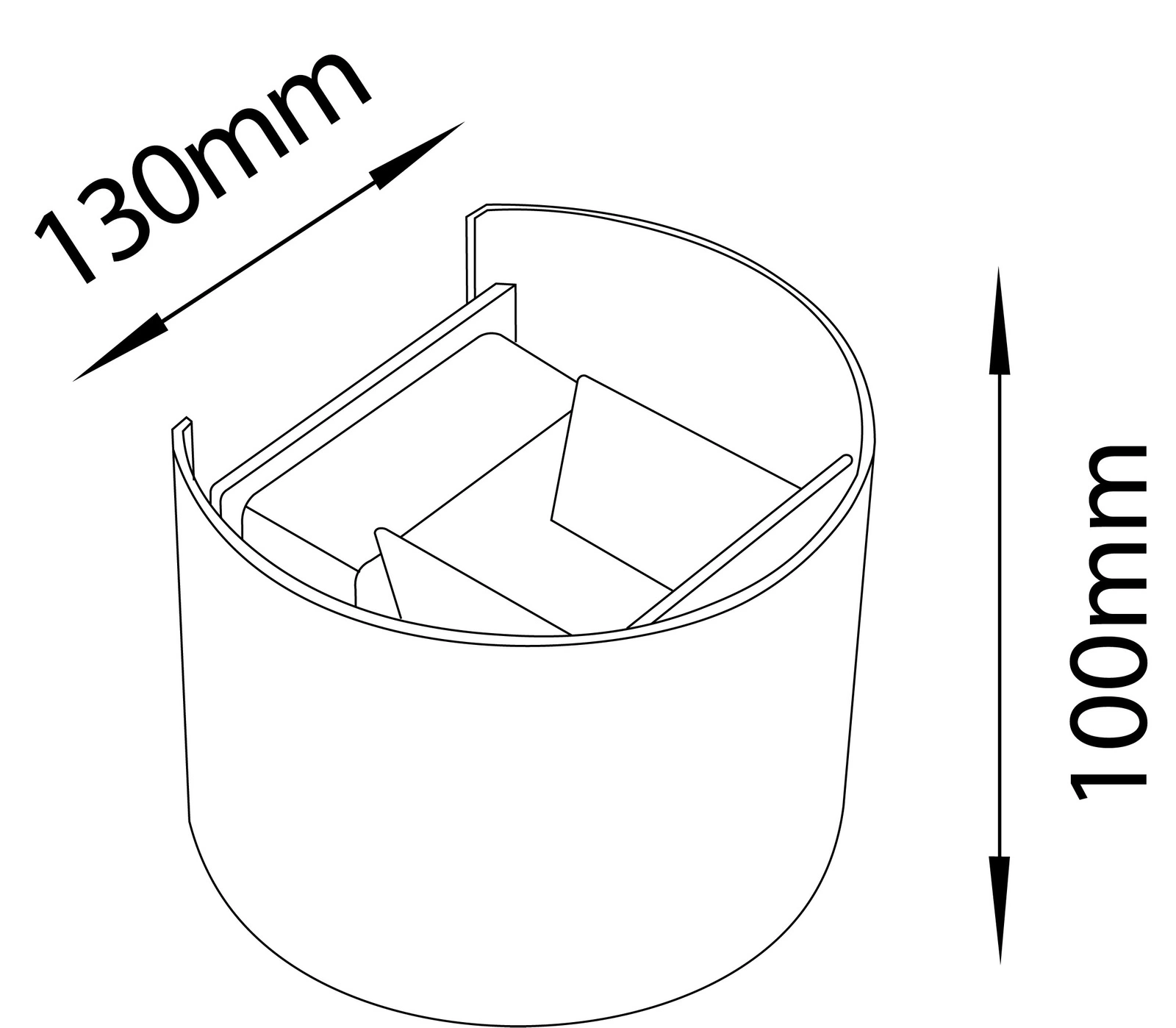 Die Leuchte ist mit zwei 2x 3W-Lichtquellen ausgestattet, die neutralweißes Licht mit einer Farbtemperatur von 4000K ausstrahlen. Auf der Rückseite der Leuchte befindet sich eine Montageplatte mit Schraublöchern, die eine stabile Befestigung an der Wand ermöglicht. Die Wandleuchte ist für die Fassadenbeleuchtung konzipiert und eignet sich perfekt, um die Ästhetik der Architektur von Gebäuden, Terrassen oder Zäunen zu unterstreichen.