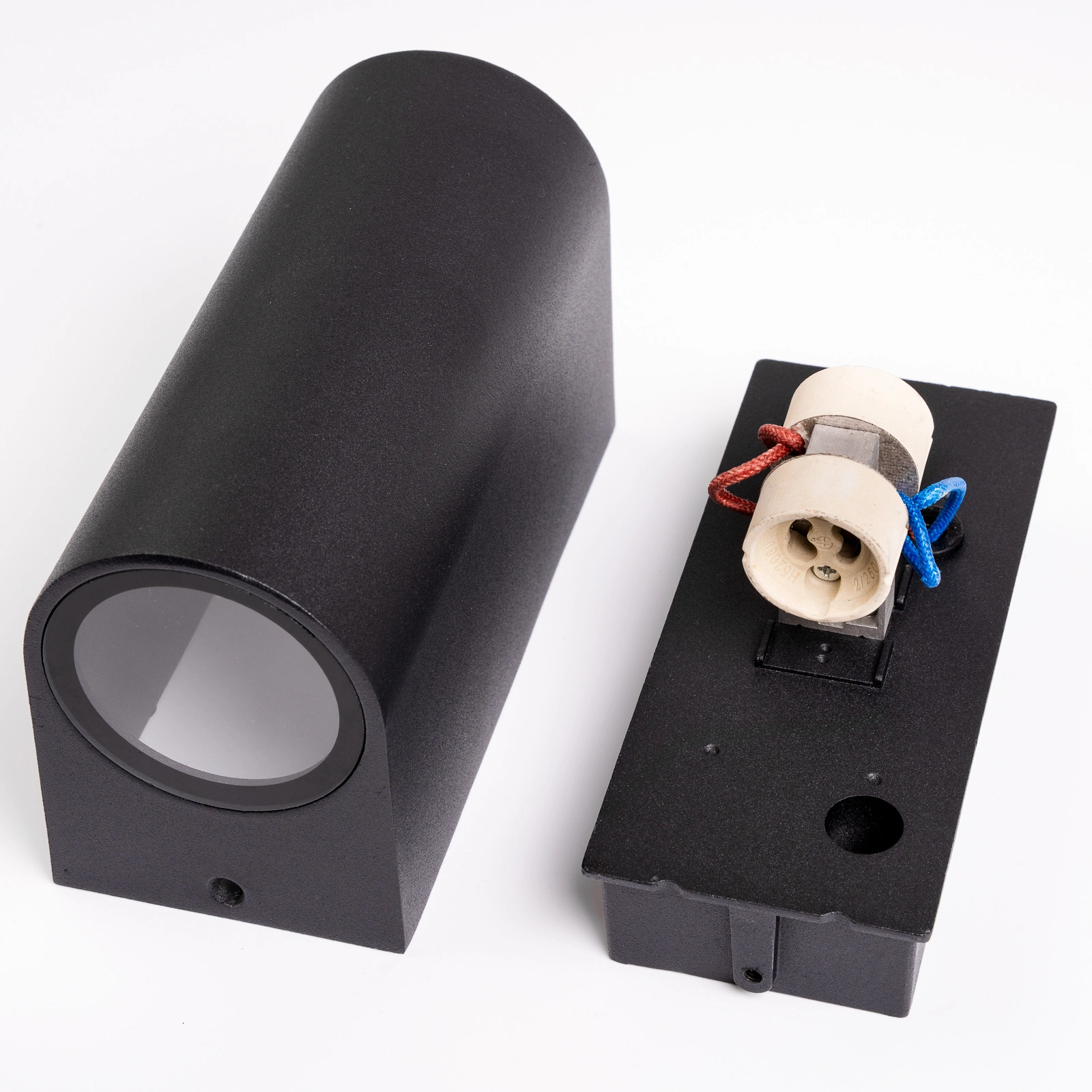 Die Leuchte ist mit einem gängigen 2x GU10-Schraubsockel ausgestattet, so dass man je nach Bedarf zwischen LED- und herkömmlichen Glühbirnen mit der entsprechenden Wattzahl und Farbe wählen kann. Die maximale Wattzahl der Lichtquelle darf 12W nicht überschreiten.