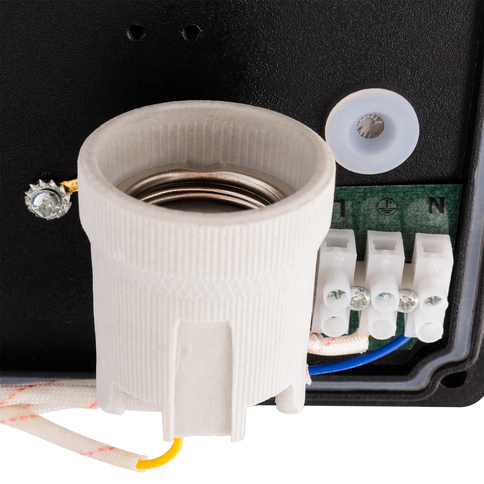 - Schwarze rechteckige Platte mit Glühbirnenfassung