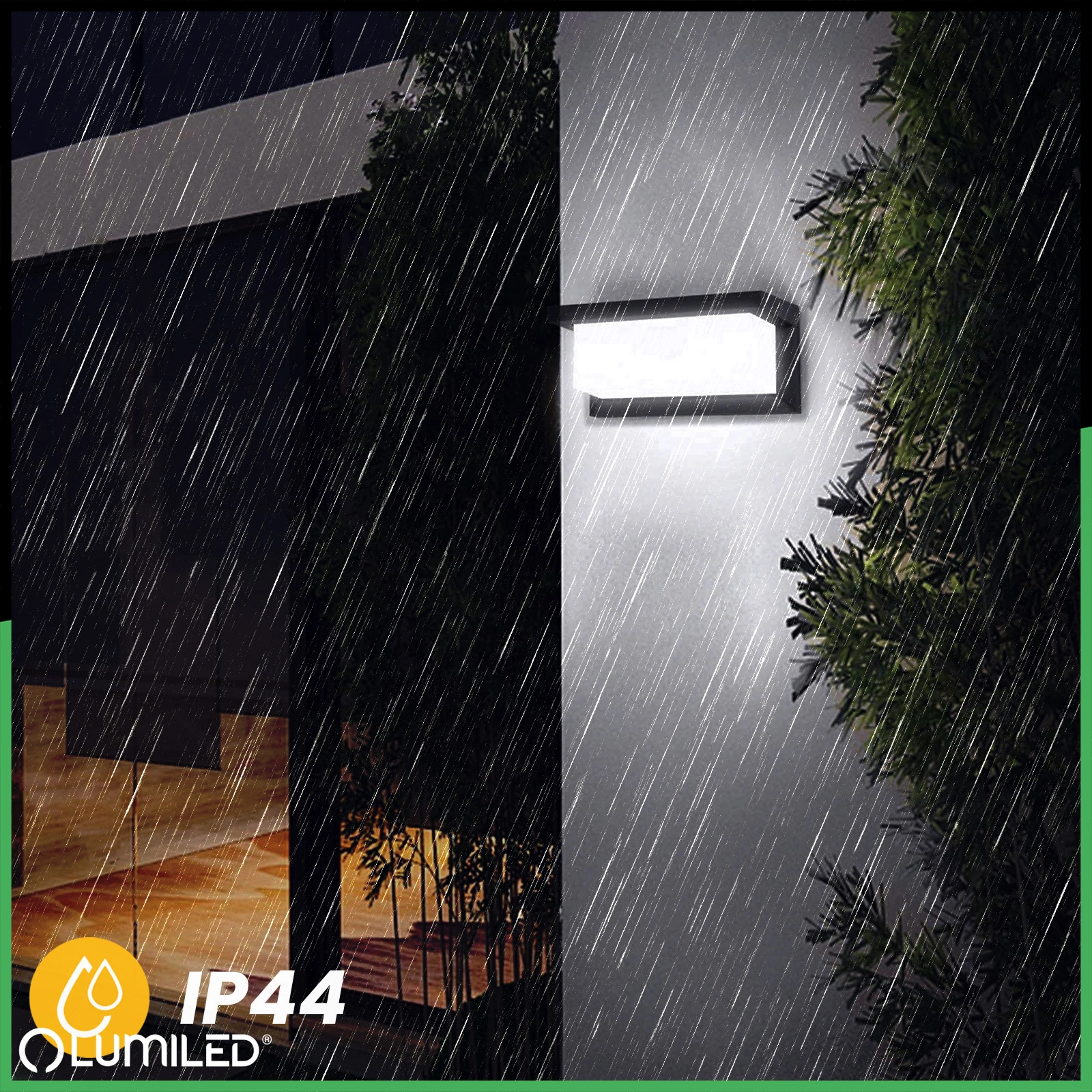 Die Leuchte wurde so konzipiert, dass sie widrigen Wetterbedingungen standhält. Sie ist wasserdicht (IP44), d. h. sie ist resistent gegen Spritzwasser und das Eindringen von Staub, was sie zu einer idealen Lampe für den Außenbereich macht.