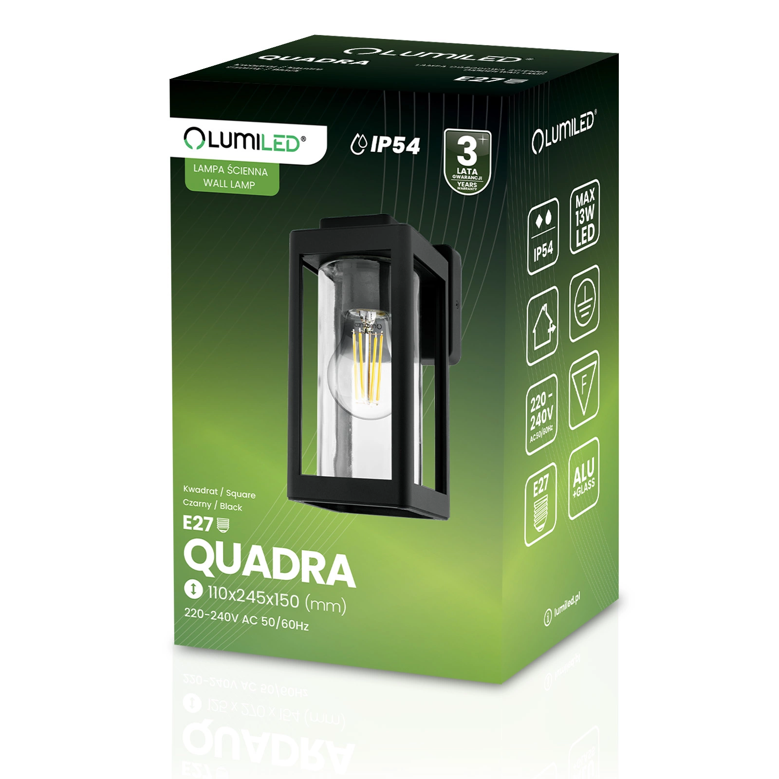 Das Produkt garantiert eine außergewöhnliche Wasserdichtigkeit dank eines fortschrittlichen Systems von Dichtungen und Verschraubungen, die wirksam gegen das Eindringen von Wasser und Feuchtigkeit schützen. Speziell entwickelte Komponenten bieten Schutz vor Witterungseinflüssen, was für die Außenbeleuchtung entscheidend ist. Das überlegene Design der Dichtungen bietet auch Schutz vor Staub und Schmutz, was die Lebensdauer der Lampe erheblich verlängert. Dank ihrer hohen Wasserdichtigkeit ist diese Lampe die ideale Wahl für alle Wetterbedingungen.