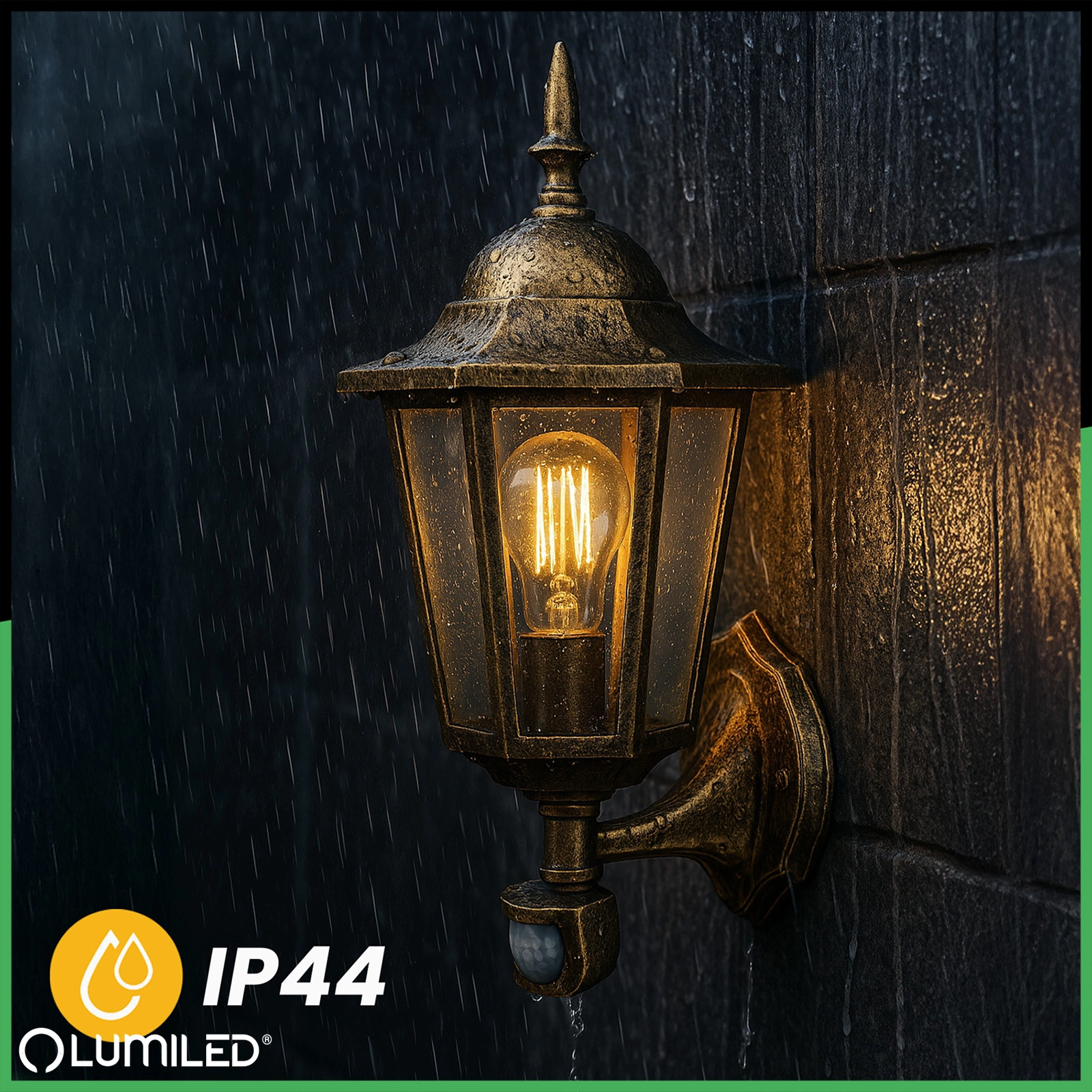 Die Lampe funktioniert mit dem beliebten E27-Schraubsockel, der Ihnen völlige Freiheit bei der Wahl des LED-Leuchtmittels gibt - Sie können jede beliebige Wattzahl oder Lichtfarbe wählen. Dank des IP44-zertifizierten Gehäuses kann die Lampe sicher im Freien verwendet werden - Regen oder Staub können ihr nichts anhaben, auch nicht bei täglichem Einsatz unter härteren Bedingungen. Das verwendete Aluminium rostet nicht und eignet sich dank seiner Härte und Leichtigkeit ideal als langlebiges und dennoch ästhetisch ansprechendes Gehäuse für Außenleuchten.