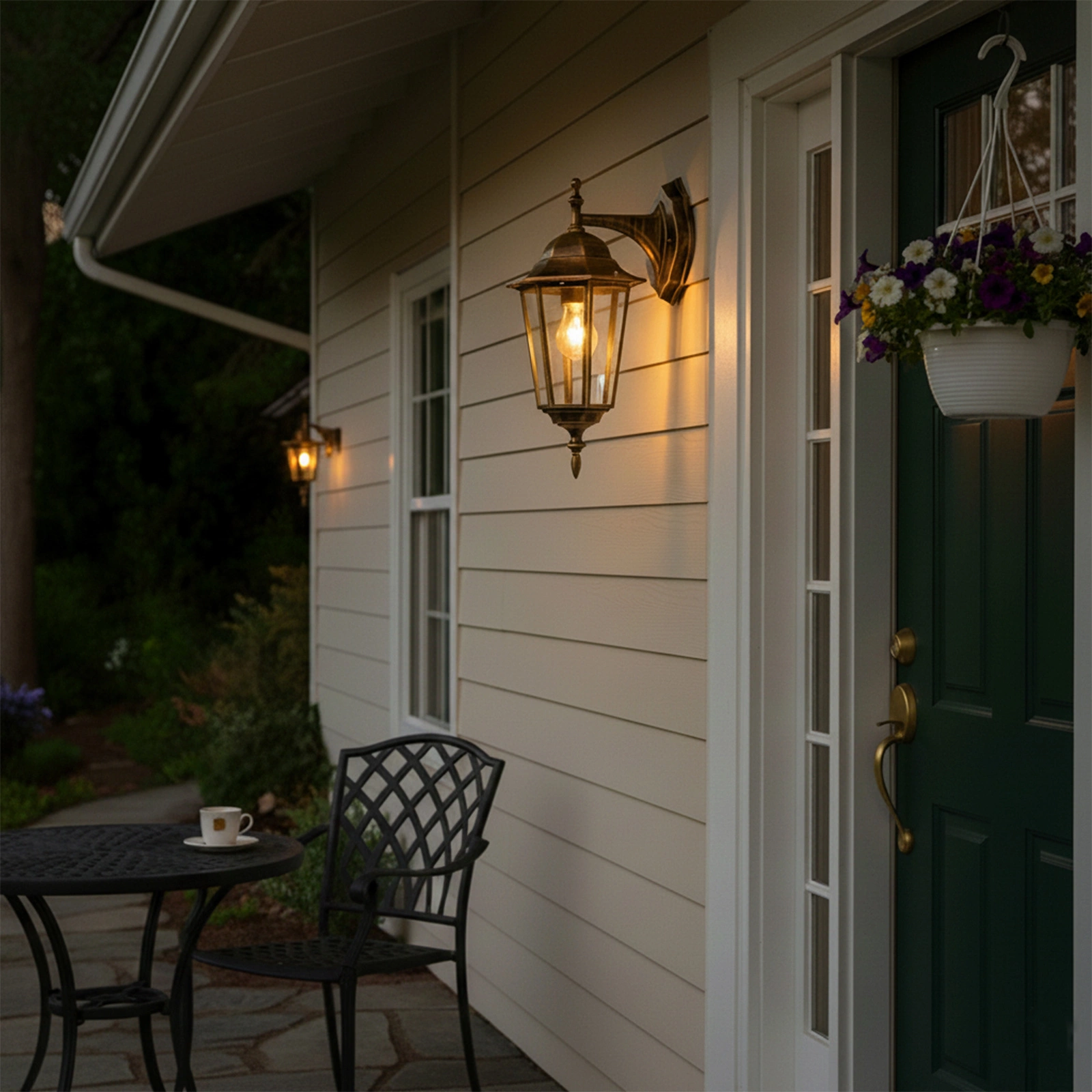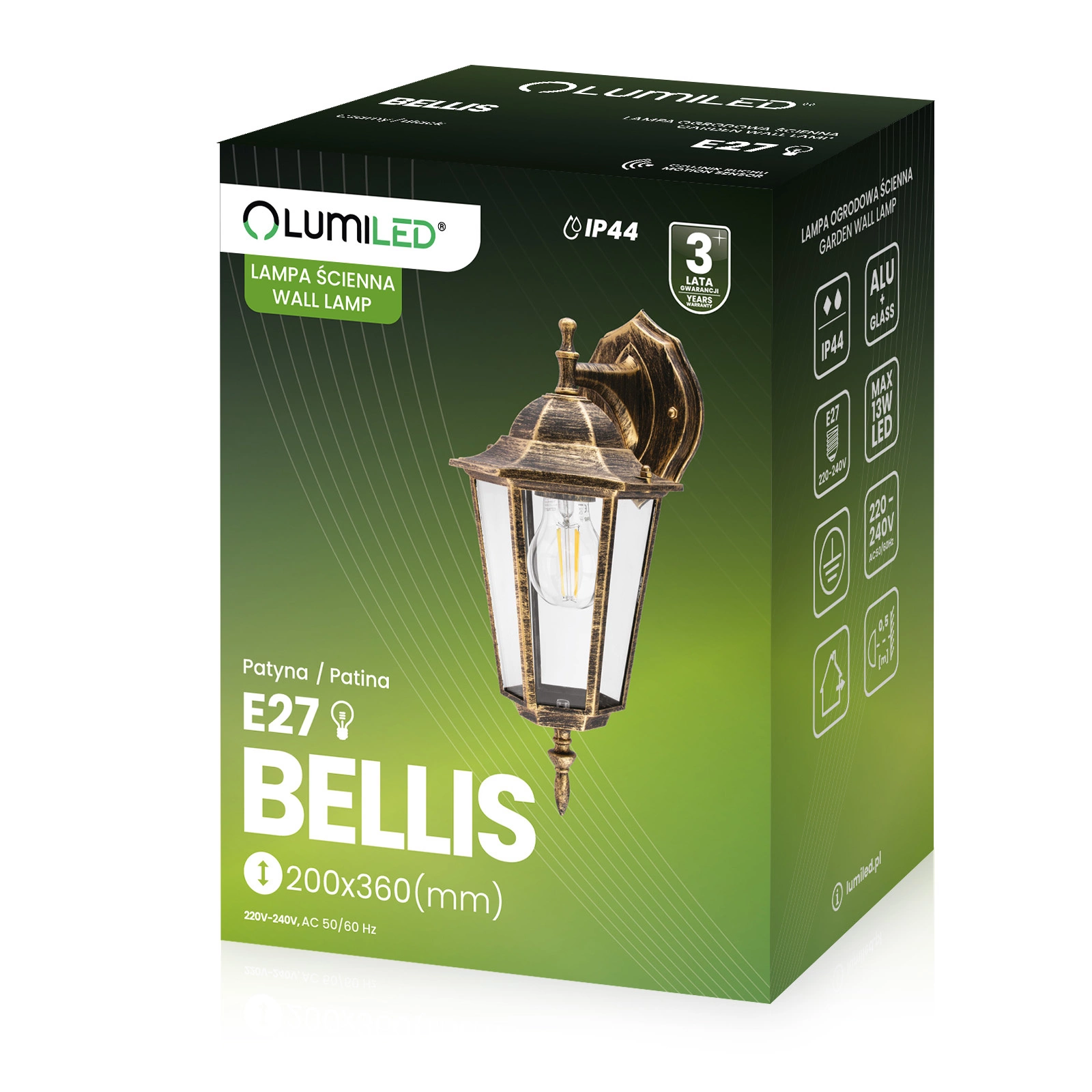 Die Wandleuchte, Gartenleuchte von LUMILED der Serie BELLIS in Patina (Altgold) zeichnet sich vor allem durch ihr schönes laternenförmiges Design und ihre problemlose Montage aus. Sie ist eine elegante und praktische Leuchte, ideal für den Einsatz im Außenbereich. Sie ist für die Aufbaumontage an Hausfassaden konzipiert. Die Gartenleuchte erleichtert die abendliche Bewegung auf dem Grundstück, indem sie es nicht nur beleuchtet, sondern auch eine magische Atmosphäre schafft, die den Aufenthalt dort noch angenehmer macht.