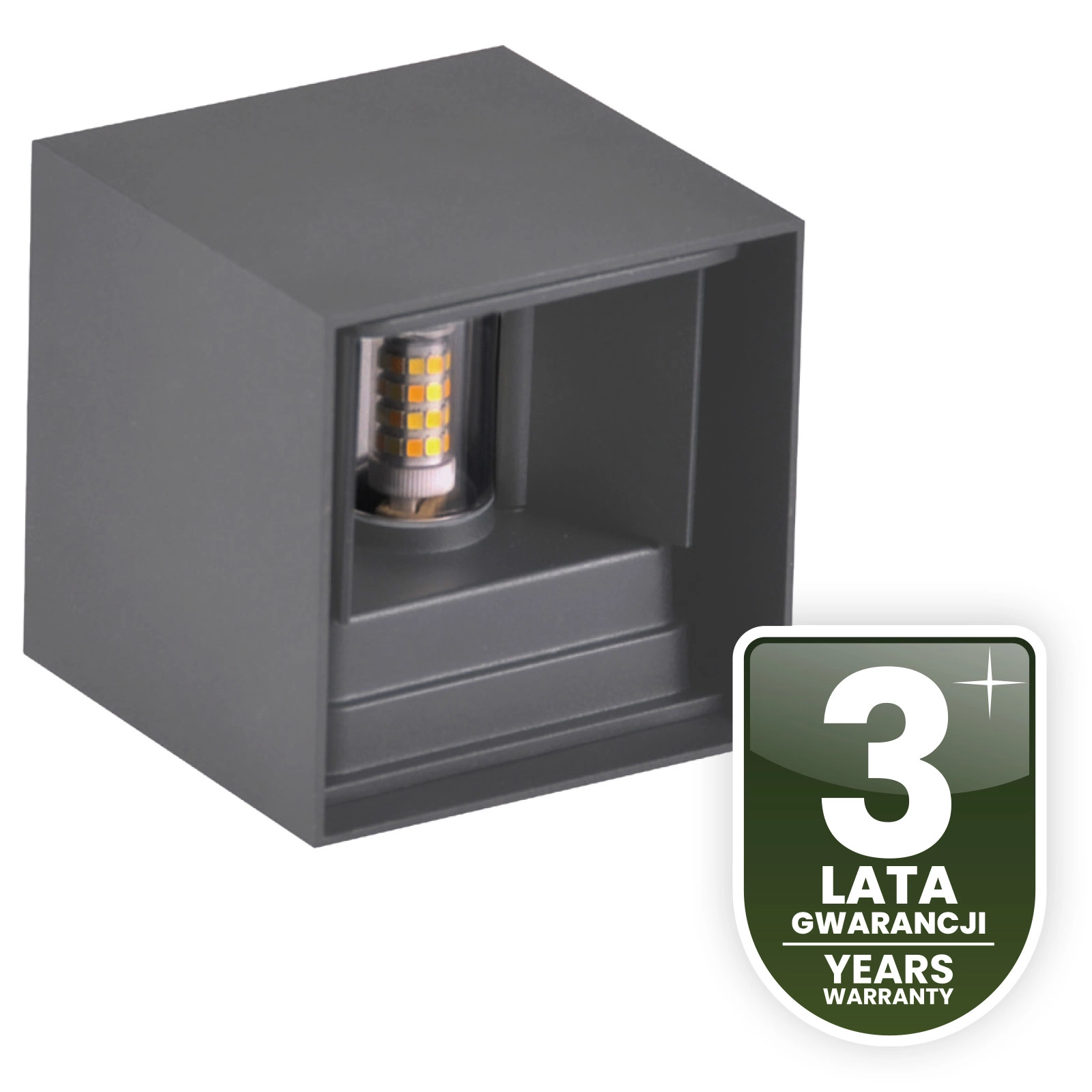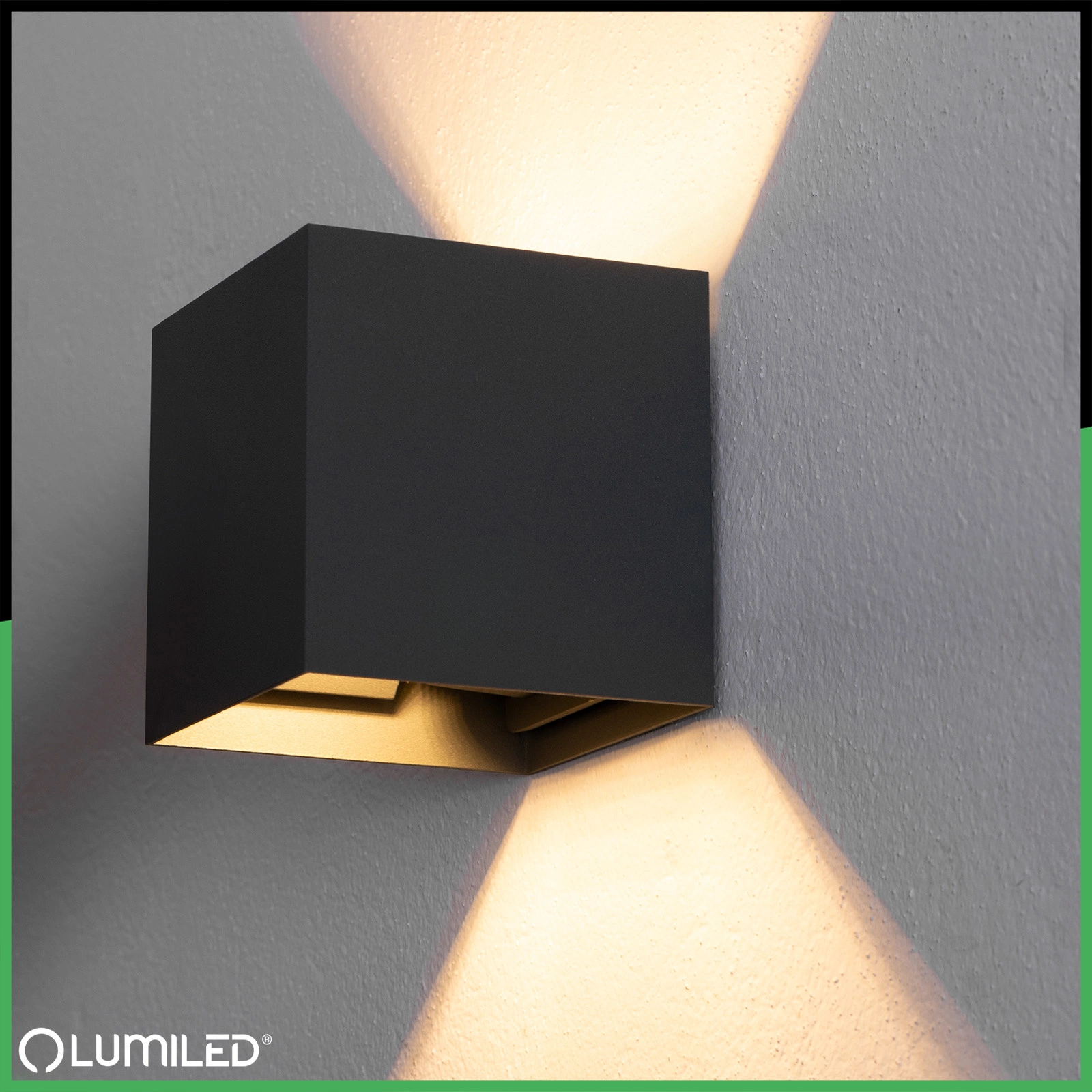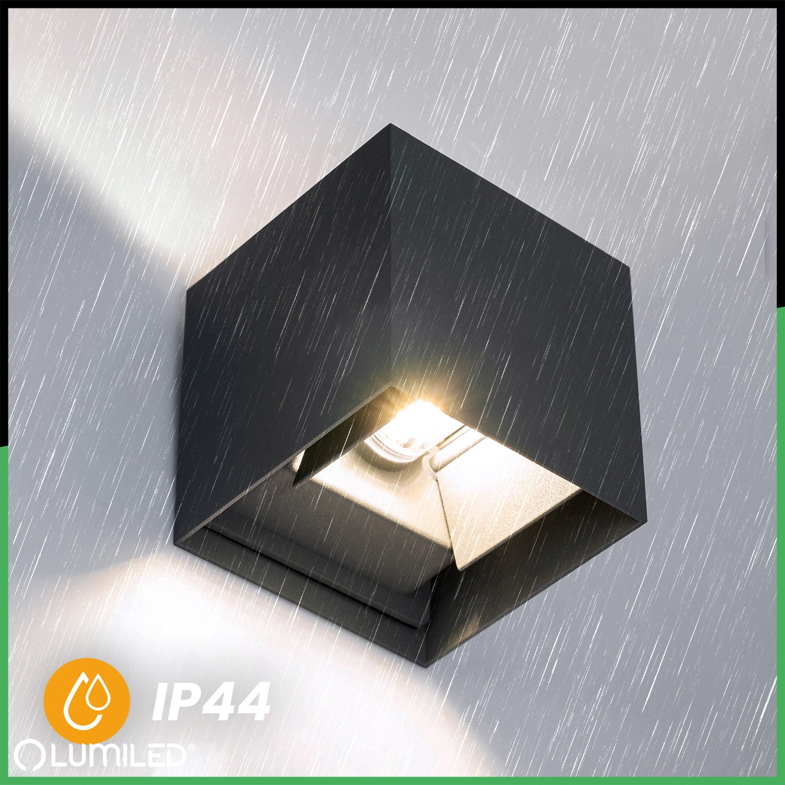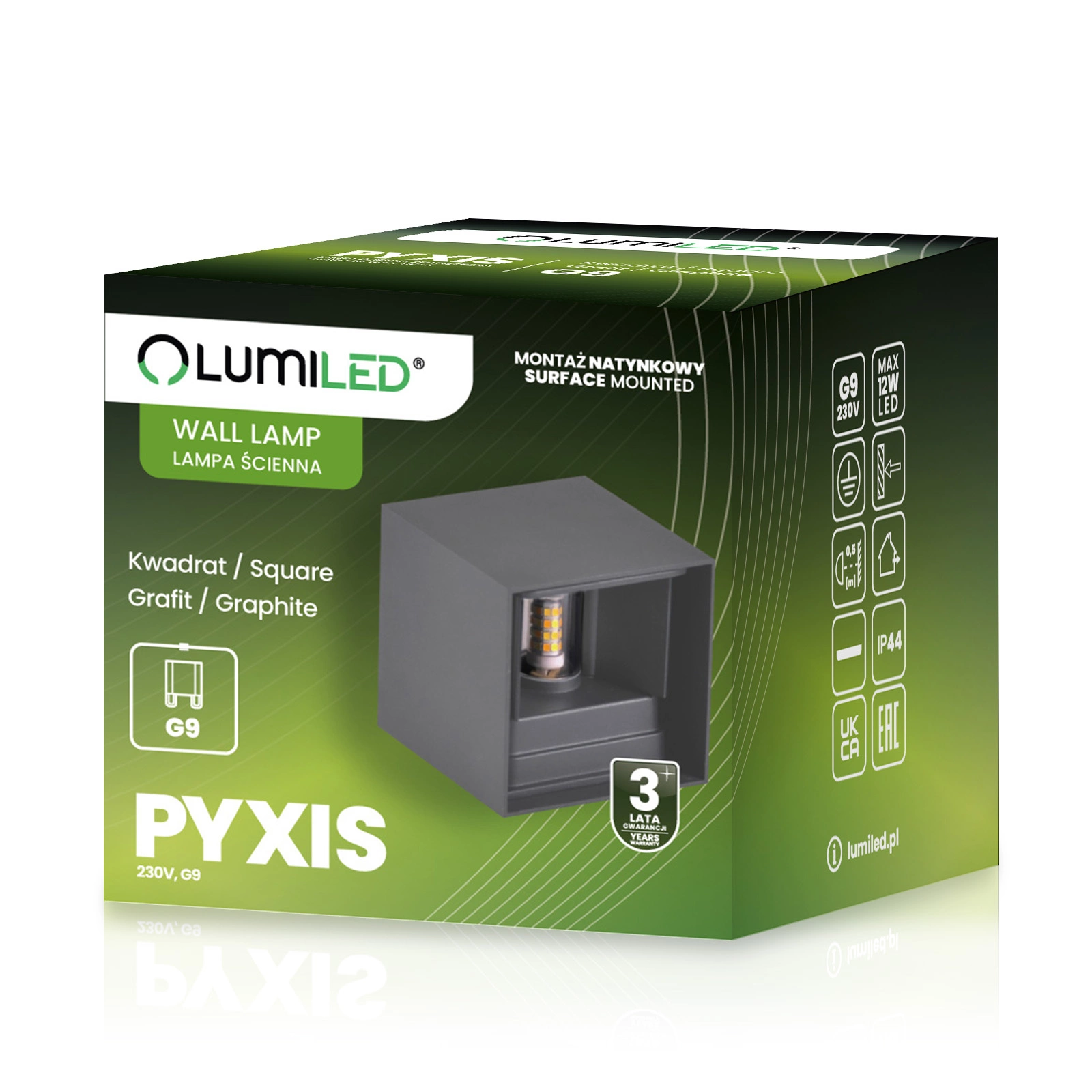 Die Garten-Wandleuchte, Wandleuchter in Graphitfarbe aus der Serie PYXIS von LUMILED zeichnet sich vor allem durch ihr modernes Design und die problemlose Montage aus. Die Leuchte ist eine elegante und praktische Beleuchtung, ideal für den Einsatz außerhalb des Hauses. Sie ist für die Aufbaumontage an Hausfassaden konzipiert.