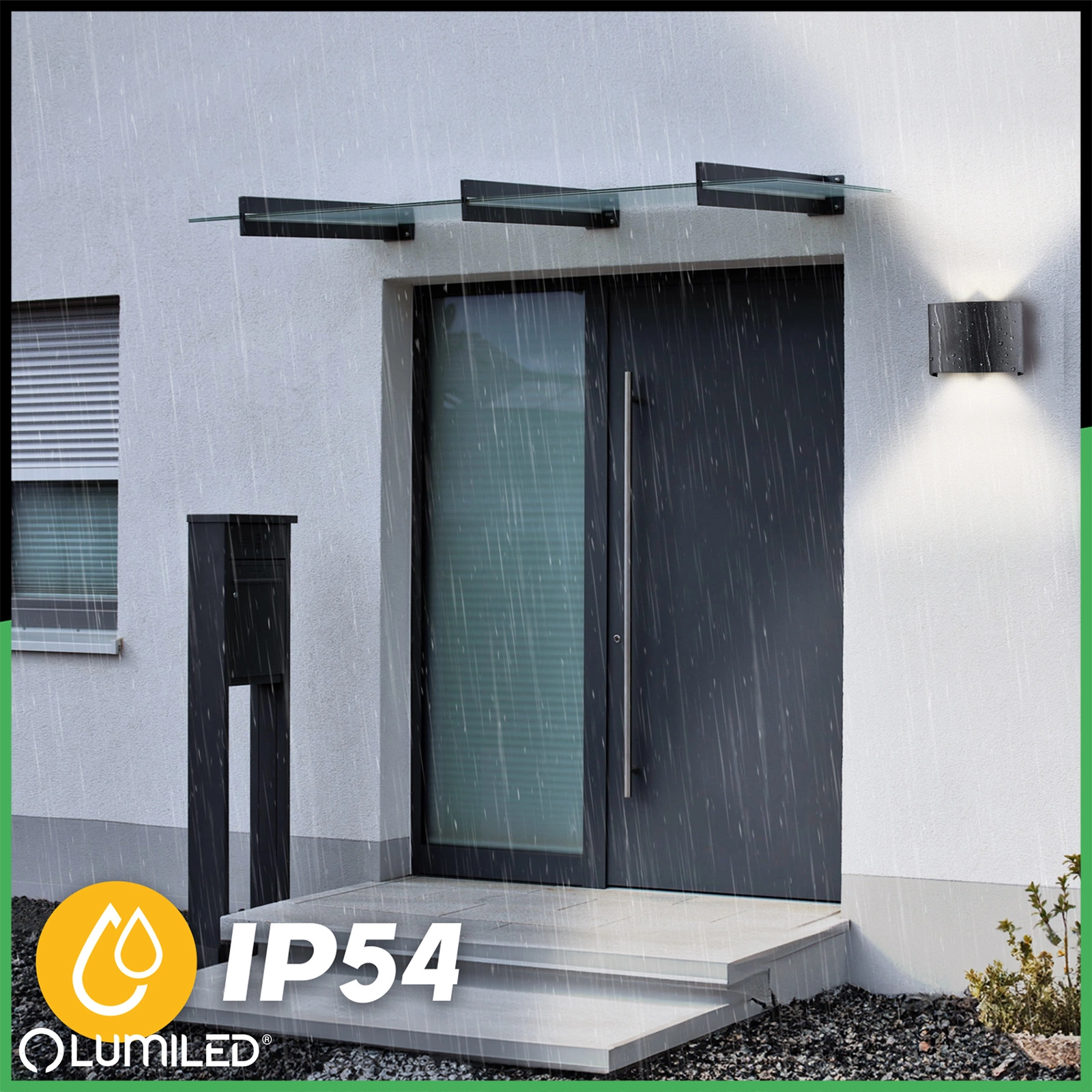 Die Fassadenleuchte ist aus hochwertigem Aluminium gefertigt, das korrosions- und witterungsbeständig ist. Die Leichtigkeit und Härte des Aluminiums garantieren Langlebigkeit und eine einfache Installation.