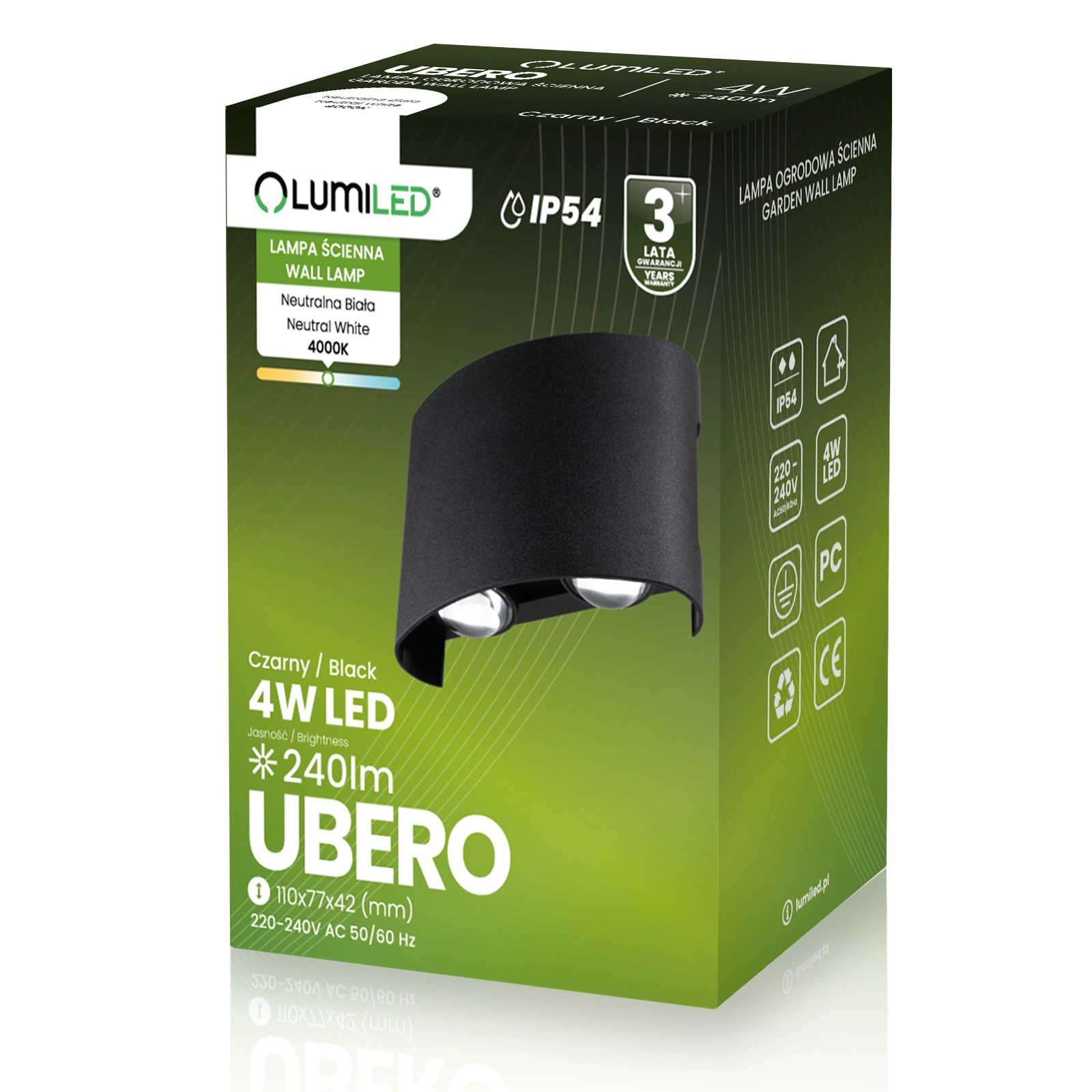 Die Leuchte verfügt über 4 LED-Lichtpunkte, die das Licht schön streuen. Diese Punkte beleuchten den Raum sowohl von unten als auch von oben. Dies ist eine großartige Lösung, die einem Innenraum oder einer Fassade einen interessanten Effekt verleihen und eine angenehme Atmosphäre schaffen kann.