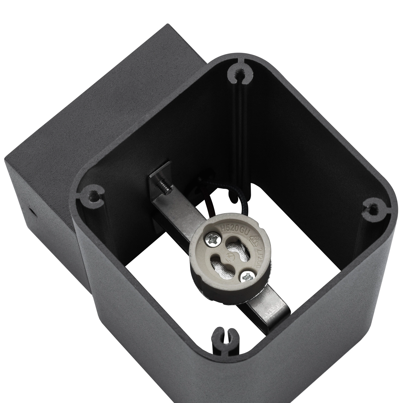 Die Leuchte ist mit dem weit verbreiteten GU10-Schraubsockel ausgestattet, so dass wir je nach Bedarf LED- und herkömmliche Glühbirnen mit der entsprechenden Wattzahl und Farbe wählen können. Der Sockel ist ein genormter Steckertyp, der das Anschließen und Auswechseln der Glühbirne erleichtert.