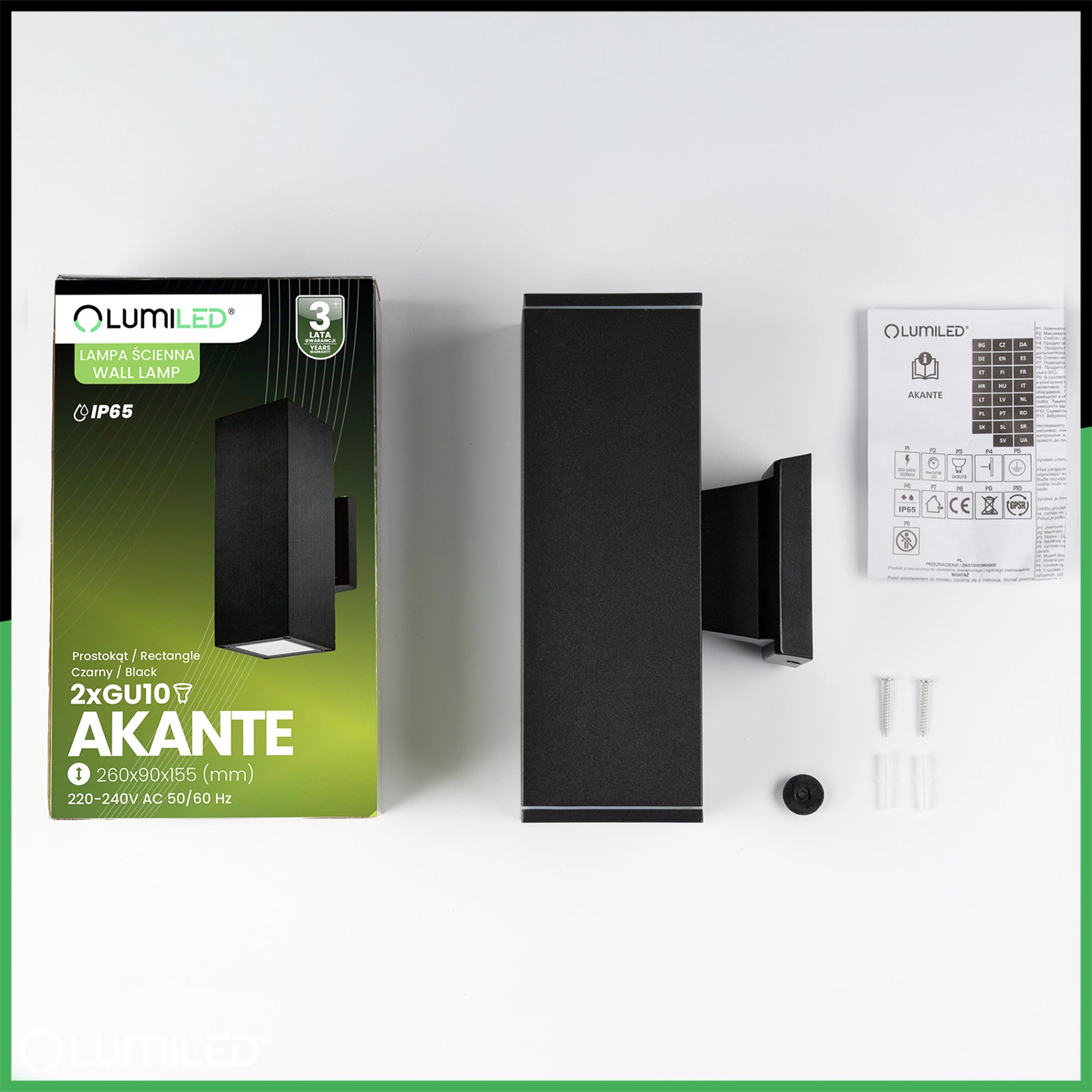 Bei der Entwicklung der Gartenlampe wurde auf eine einfache Montage geachtet, die durch eine einfache zweiteilige Konstruktion, bestehend aus Lampe und Sockel, erreicht wird. Alle notwendigen Schrauben sind im Lieferumfang enthalten, was die Montage noch einfacher macht. Die Wandleuchte ist für den direkten Anschluss an 230 V geeignet, was ein wichtiger Vorteil ist, denn dadurch entfällt die Notwendigkeit, zusätzliche Installationskomponenten wie Netzteile oder Konverter zu kaufen.