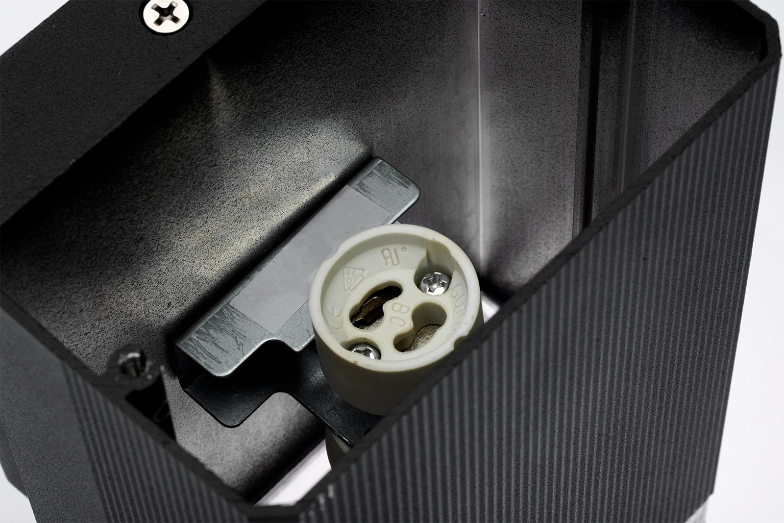 Die Leuchte ist mit dem weit verbreiteten GU10-Schraubsockel ausgestattet, so dass man je nach Bedarf zwischen LED- und herkömmlichen Glühbirnen mit der entsprechenden Wattzahl und Farbe wählen kann. Der Sockel ist ein genormter Steckertyp, der das Anschließen und Auswechseln des Leuchtmittels erleichtert.