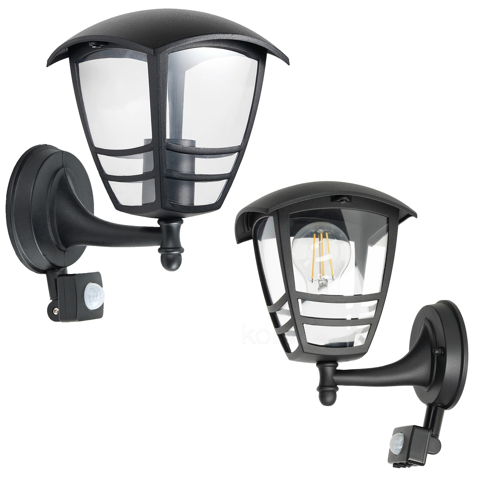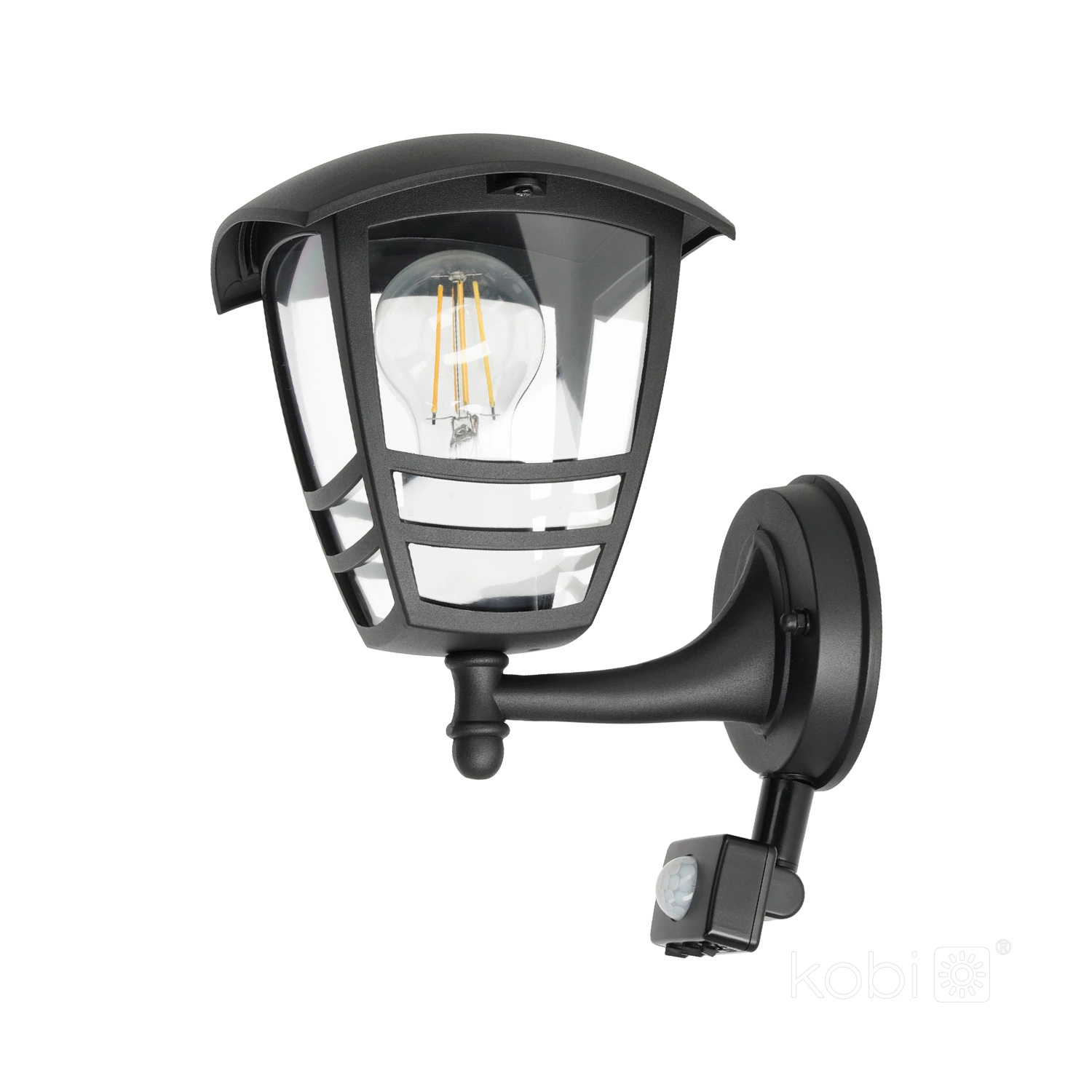 Wandleuchte E27 mit Bewegungs- und Dämmerungssensor IP54 Schwarz Tevio Kobi