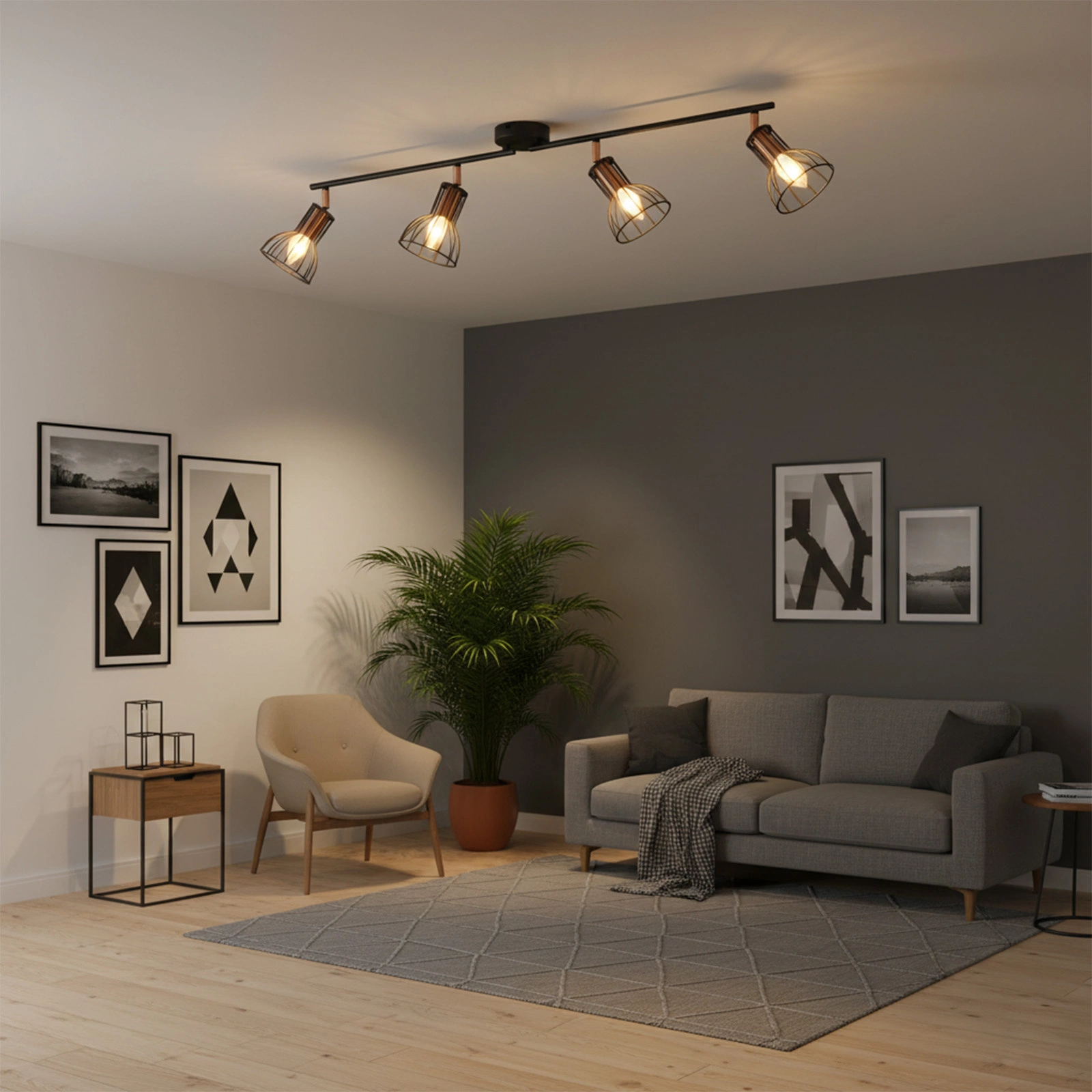 Genießen Sie die ansprechende Wandleuchte Sofia , die mit vier traditionellen E14- Fassungen ausgestattet ist , für die wir beliebte, energiesparende LED-Leuchtmittel mit einer maximalen Leistung von 8 W verwenden können . Durch die Kombination dekorativer LED-Lampen und eines Lampenschirms aus schwarzem Draht erzielen wir einen erstaunlichen Effekt, der unseren Innenräumen Charakter und ein interessanteres Aussehen verleiht. Als zusätzliche Lichtquelle kann je nach Bedarf eine moderne und praktische Beleuchtung in Form von LED-Leuchten eingesetzt werden. Verändern Sie Ihr Interieur und nutzen Sie alle Möglichkeiten, die die LED-Beleuchtung der neuesten Generation bietet. Wohnen Sie modisch und stilvoll. Sehen Sie sich weitere Modelle von Wandlampen und Lichtleisten an, die bei uns erhältlich sind.