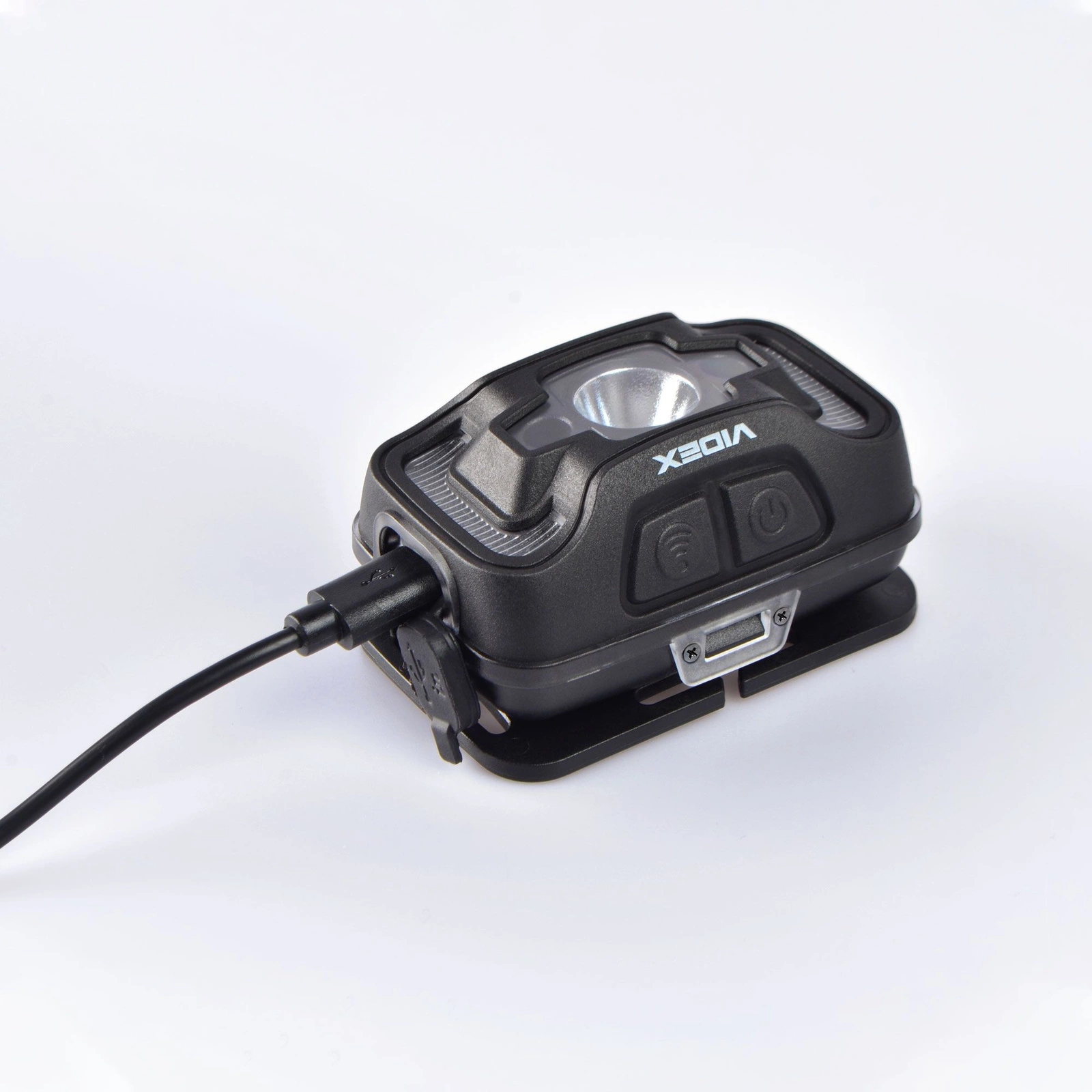 Kopflampe VIDEX H025C wird aufgeladen über das mitgelieferte USB-Typ-C-Kabel
