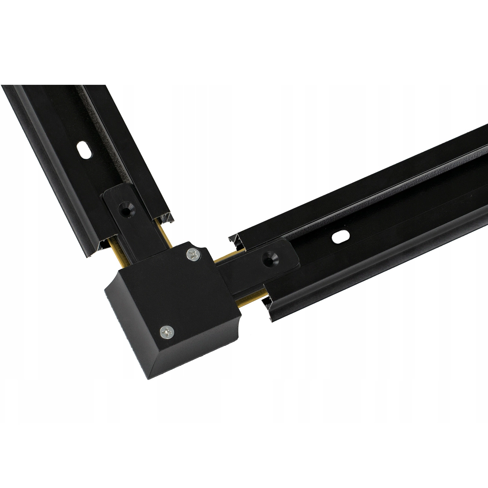 Ein schwarzer Winkelverbinder, mit dem Sie zwei Stromschienen im 90°-Winkel verbinden können. Durch den Einsatz von Verbindern können Sie die Schienen für Stromschienenleuchten verlängern.